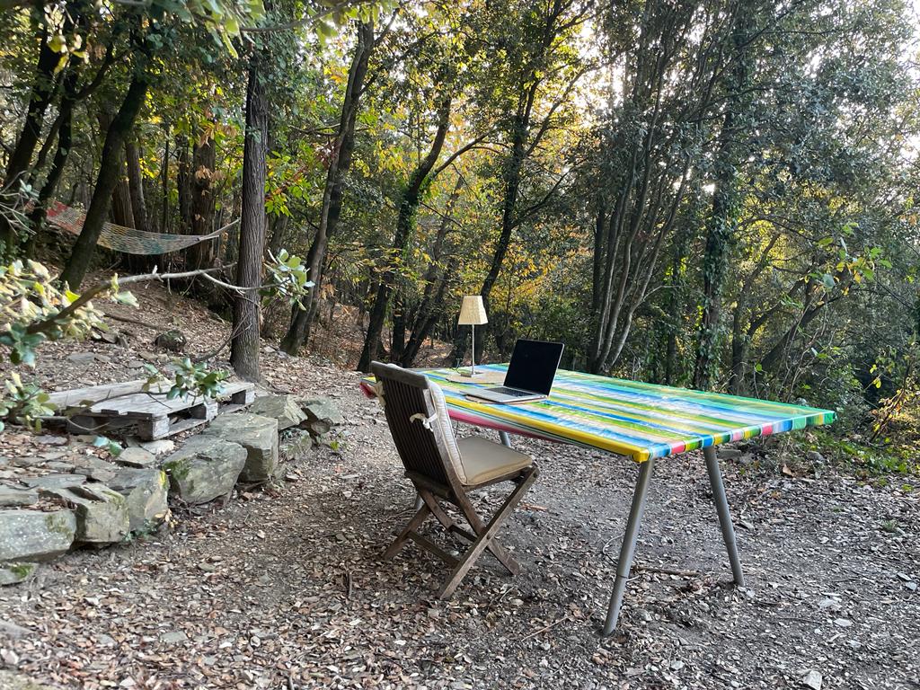 Per aprofitar el bon temps comptem amb dues taules d’exterior: al bosc, amb una hamaca per reposar les idees, i al galliner, per deixar volar la imaginació.