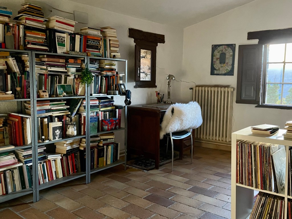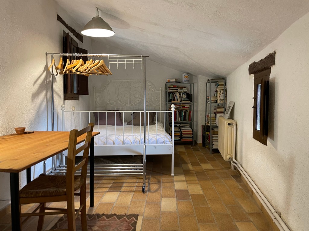 A la planta de dalt hi ha l’habitació i l’estudi-biblioteca.